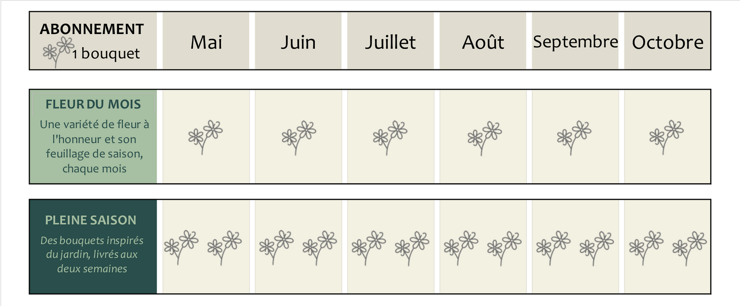 Des bouquets de fleurs fraîches et éclatantes livrées tout près de chez vous, chaque deux semaines, pour les saisons de votre choix